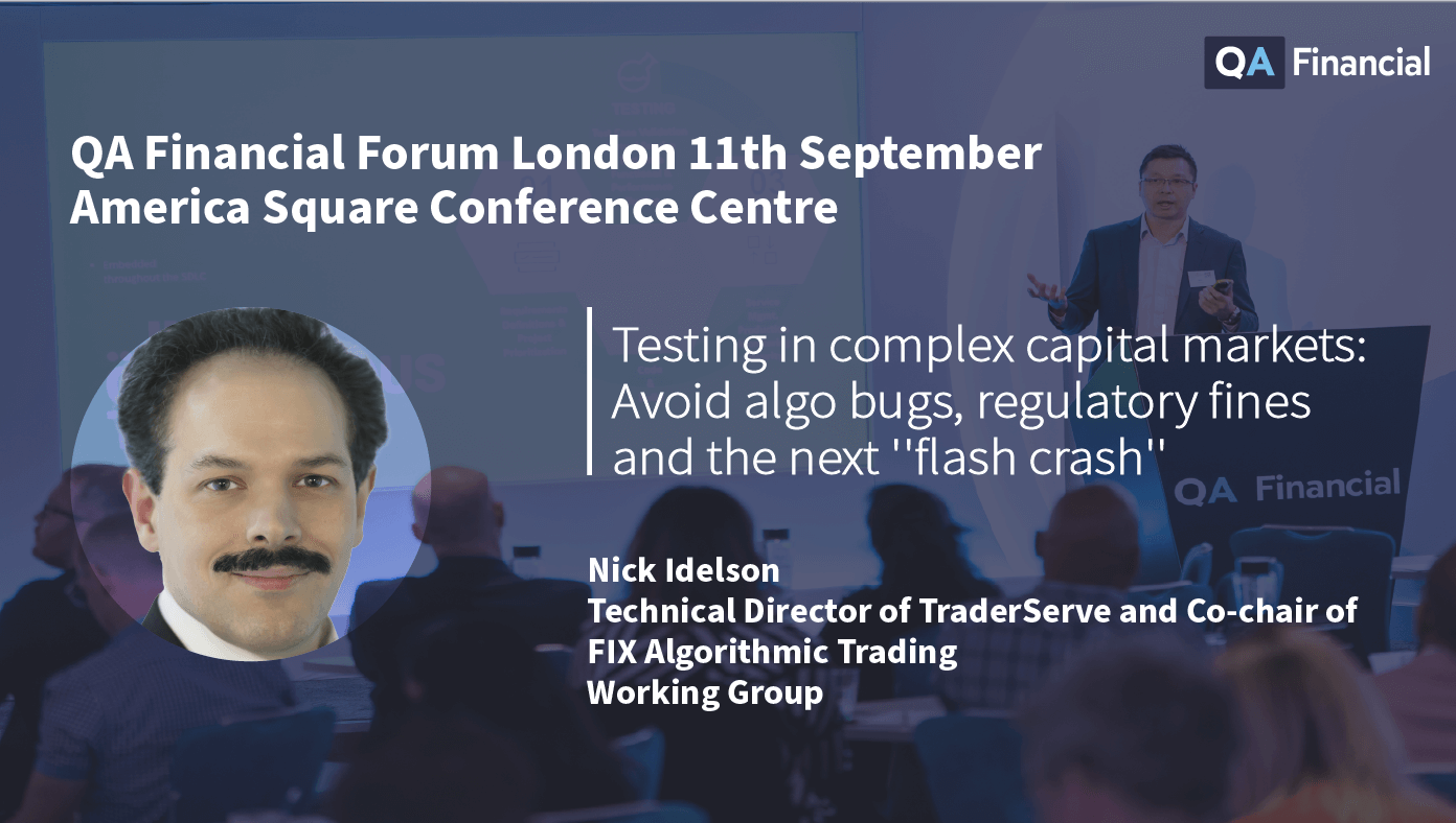 TraderServe speak at QA Financial Forum on ‘Testing in Complex Capital Markets: Avoid algo bugs, regulatory fines and the next “flash crash”‘.